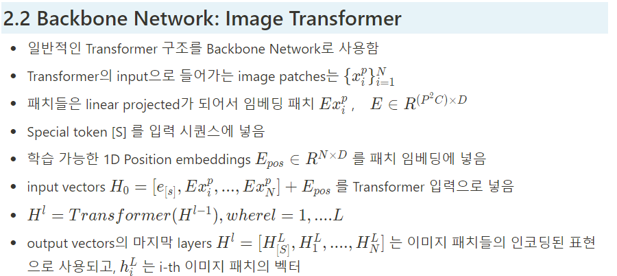 2.2 Backbone Network : Image Transformer (수식으로 인해 노션 캡처로 대체)