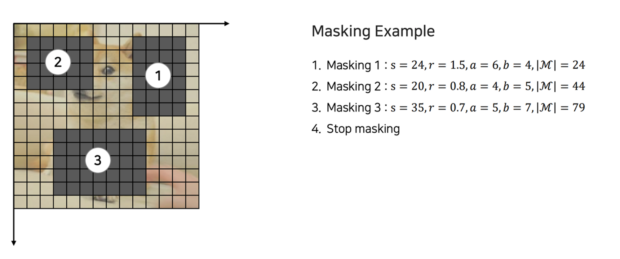 - s,r에서 계산한 값으로 masking block의 높이(a), 넓이(b)를 계산