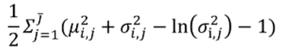 그 과정을 최적화에 넣기 위해, encoder를 통과해서 나오는 z 값의 확률분포와 정규분포와의 거리가 최소가 되도록 KL divergence 최소화. KL Divergence는 두 확률 분포 차이를 계산하기 위해 사용하는 함수로, 아래와 같이 작성된다.