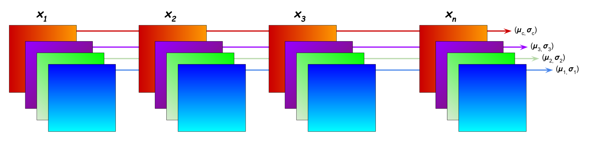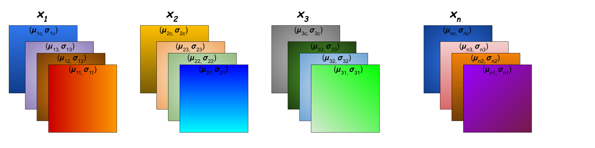현재 소개하고 있는 contrast normalization는, batch normalization을 전체 batch가 아닌 개별 instance에서 작동하는 drop-in replacement로 사용하기 때문에 GAN에서 instance normalization라는 명칭으로 주로 사용한다. 아래 이미지를 통해 batch normalization과 instance normalization의 차이를 쉽게 이해할 수 있다. (https://becominghuman.ai/all-about-normalization-6ea79e70894b에서 발췌)