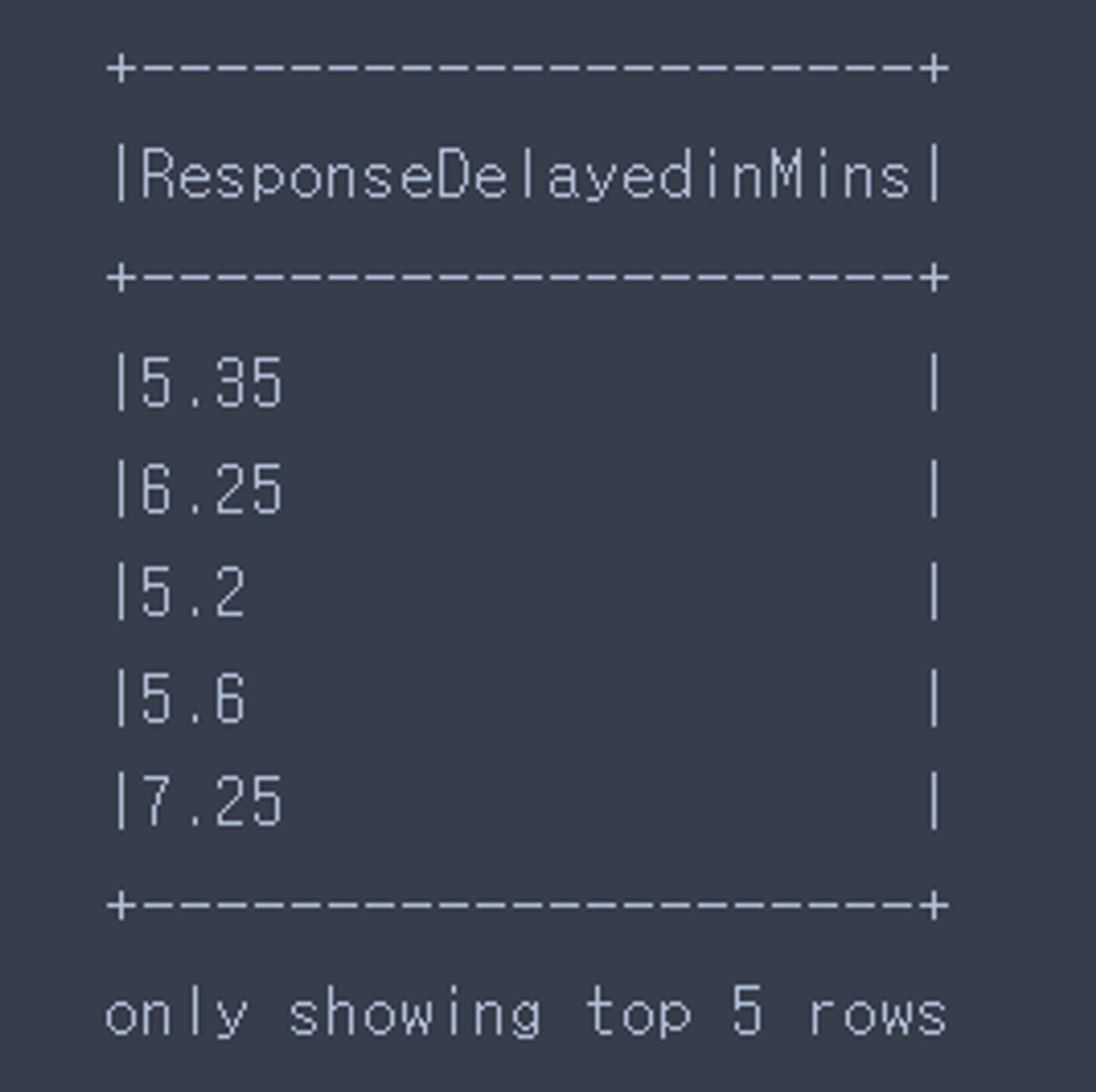 .where(col(“ “ResponseDelayedinMins”) > 5)