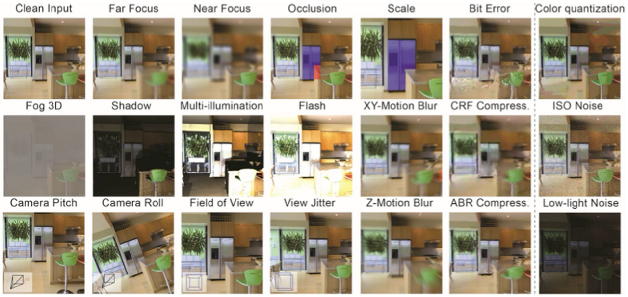 본 논문에서는 3D synthesis 기술이나 image formation model을 활용해 다양한 corruption 유형을 생성하며 아래에서는 각 변화에 대한 detail을 다룬다.
