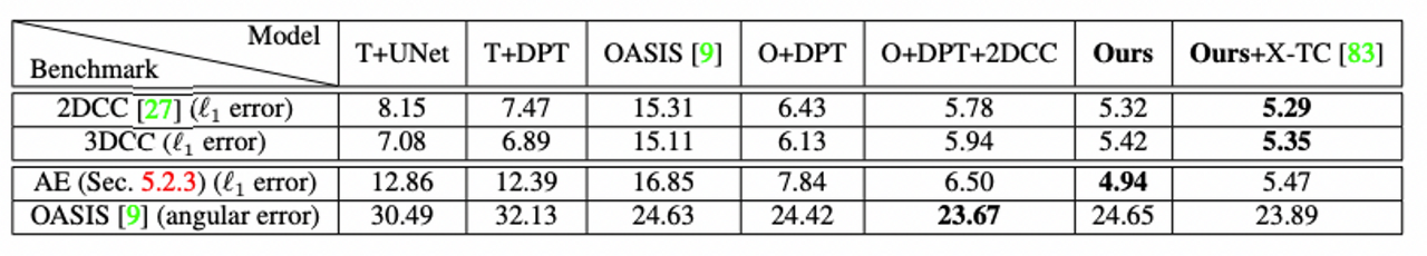 아래 표 1에서, 우리는 2DCC, 3DCC, After Effects, OASIS data에서 계산한 각 모델들의 error을 확인할 수 있다