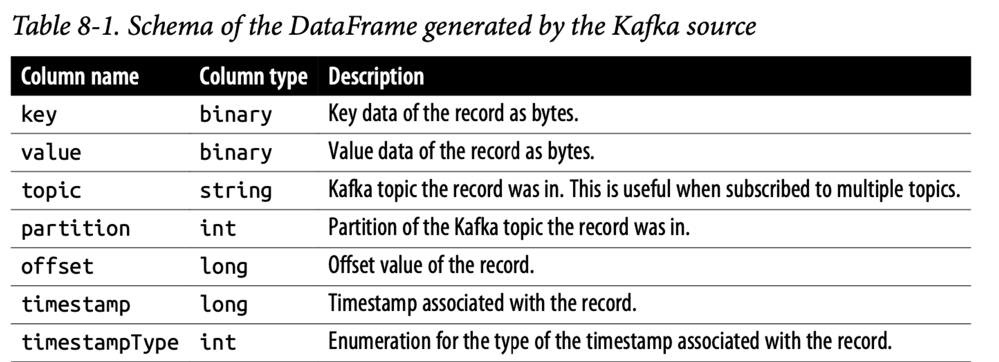 - 반환된 dataframe은 다음 표 8.1에 있는 스키마를 갖는다.
