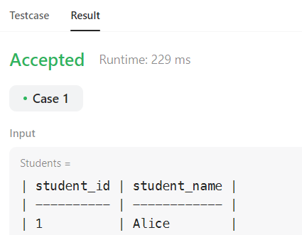 Can you solve this real interview question? Students and Examinations - Table: Students +---------------+---------+ | Column Name | Type | +---------------+---------+ | student_id | int | | student_name | varchar | +---------------+---------+ student_id is