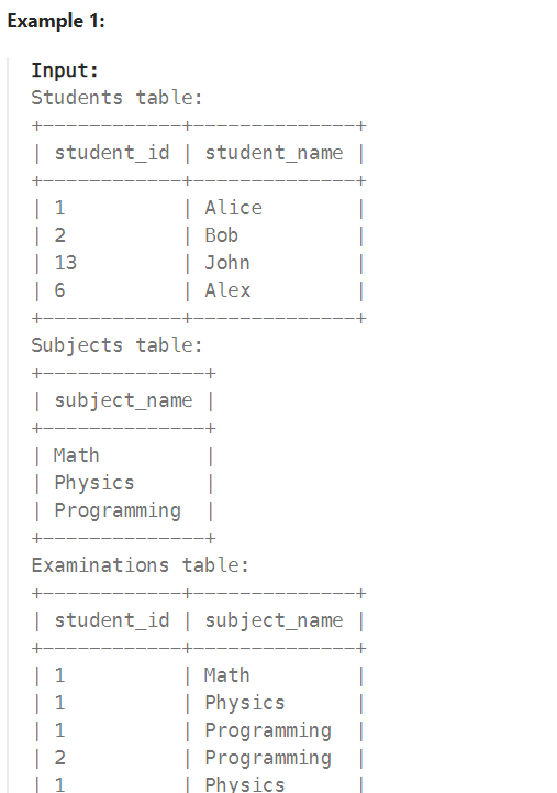 dlrpskdi 2023. 9. 16. 07:421. Students and Examinations - https://leetcode.com/problems/students-and-examinations/