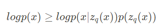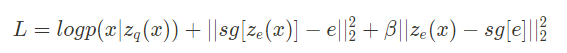 - Jensen’s inequality를 사용하여 VQ-VAE의 log likelihood를 다음과 같이 표현할 수 있다.