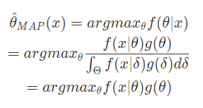 그렇다면 MAP(Maximum a posteriori estimation)은 뭘까. 아래 bayesian probability로 표현된 식을 보자.