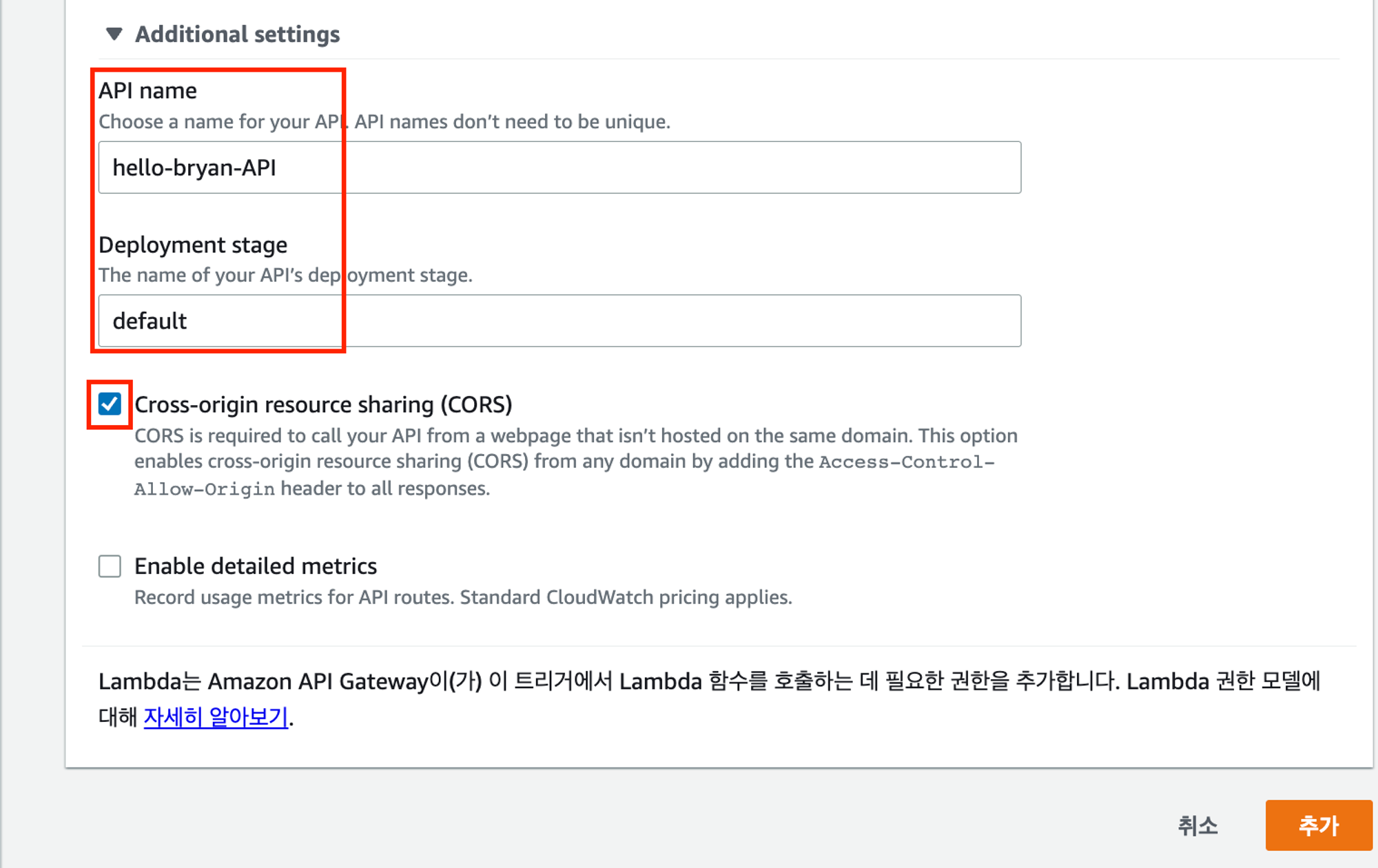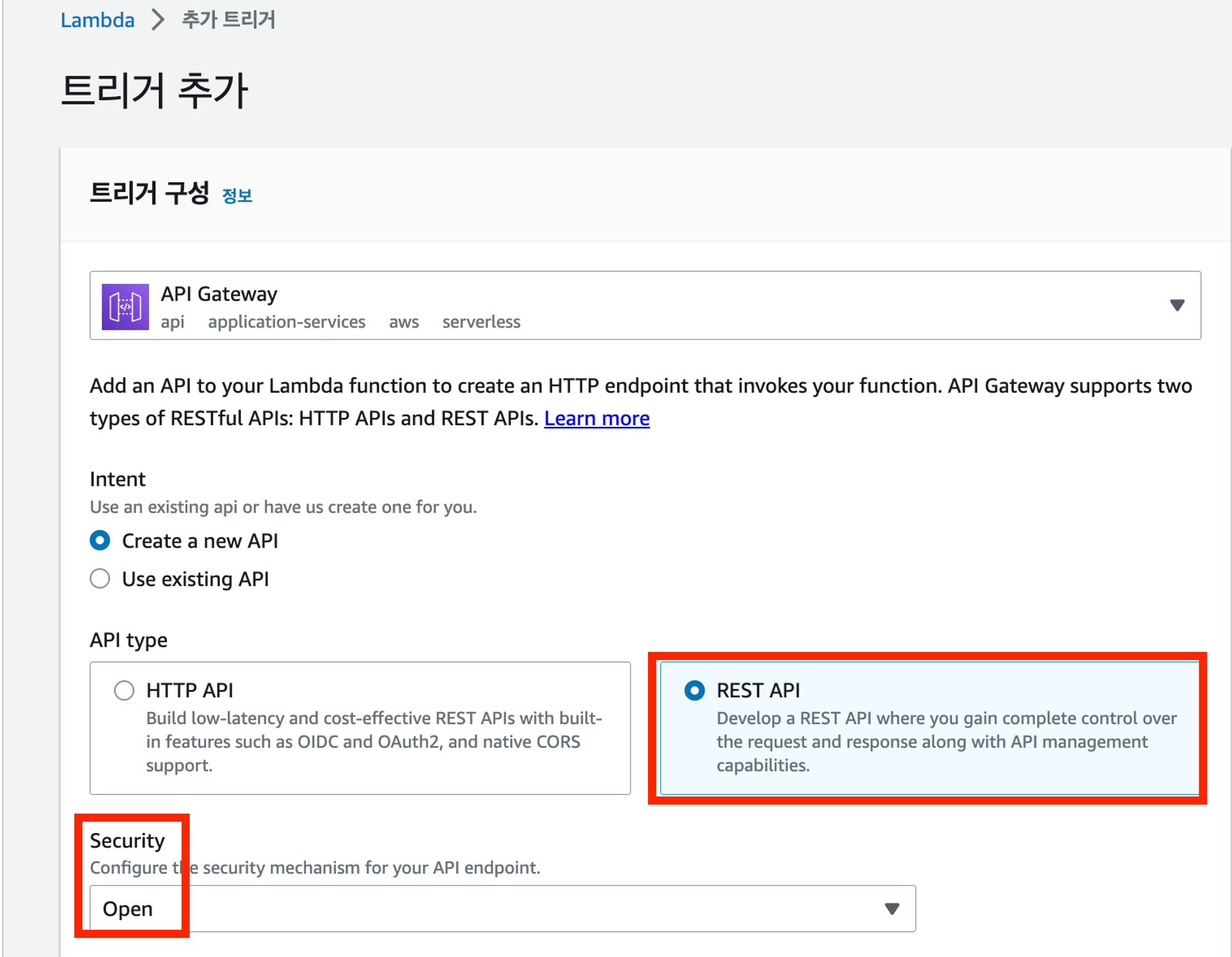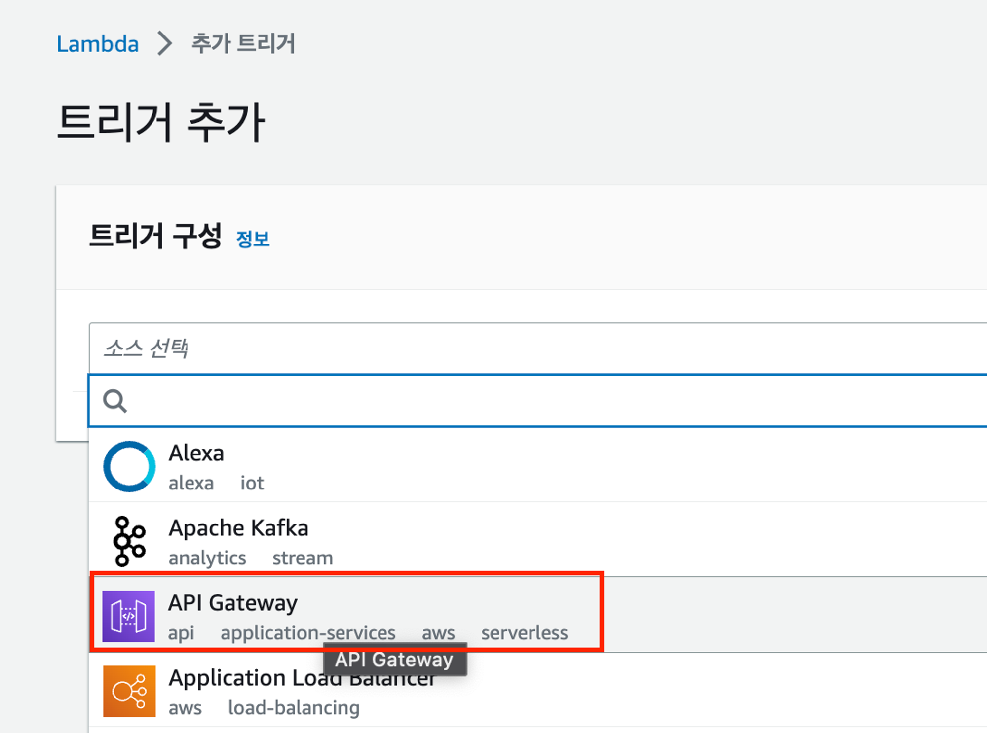 2) API Gateway 선택