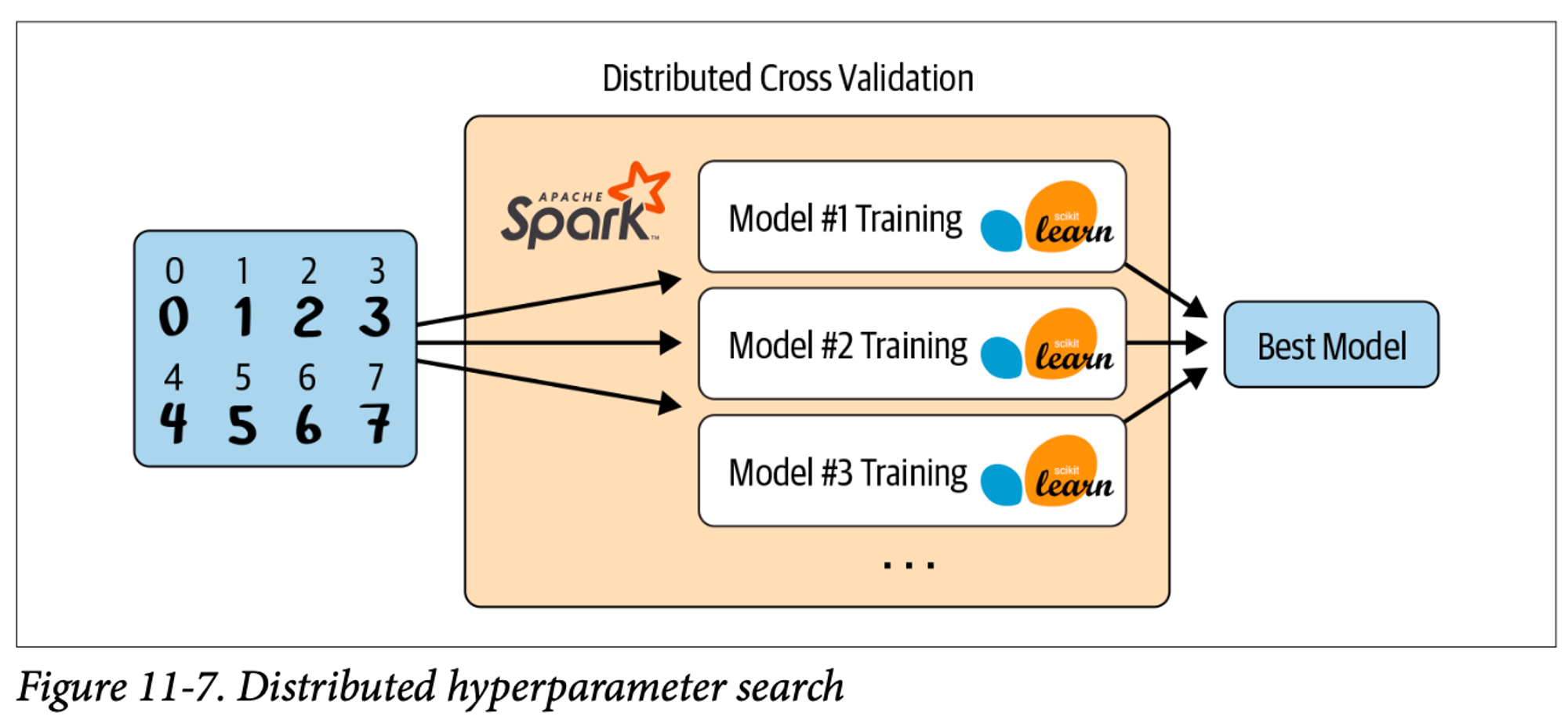 MLlib가 모델 분산 학습에 효과적인 것은 맞지만, 사용자 정의 함수로도 사이킷런&텐서플로 모델을 데이터의 하위집합으로 빌드하고 스파크를 사용해 전체 데이터 세트에 대해 분산 추론을 수행할 수 있다.