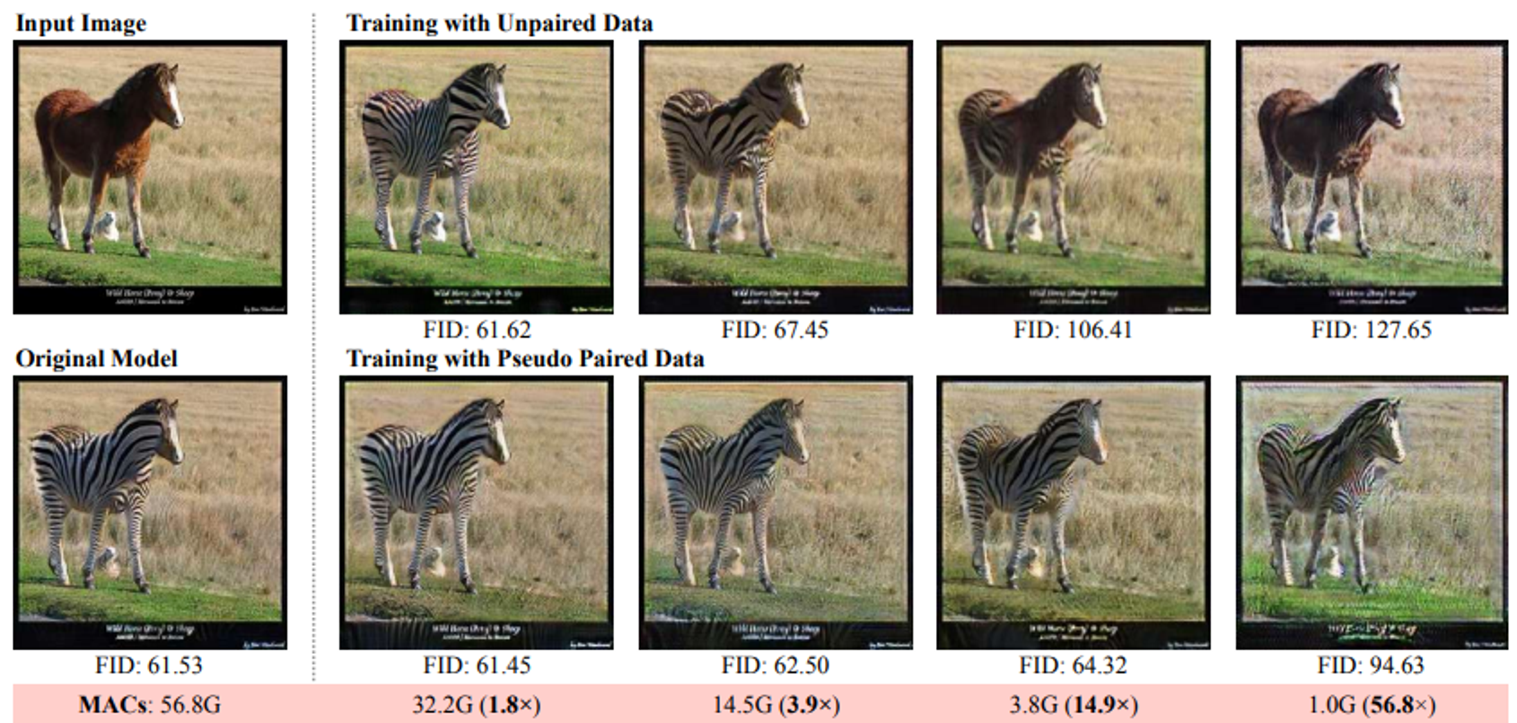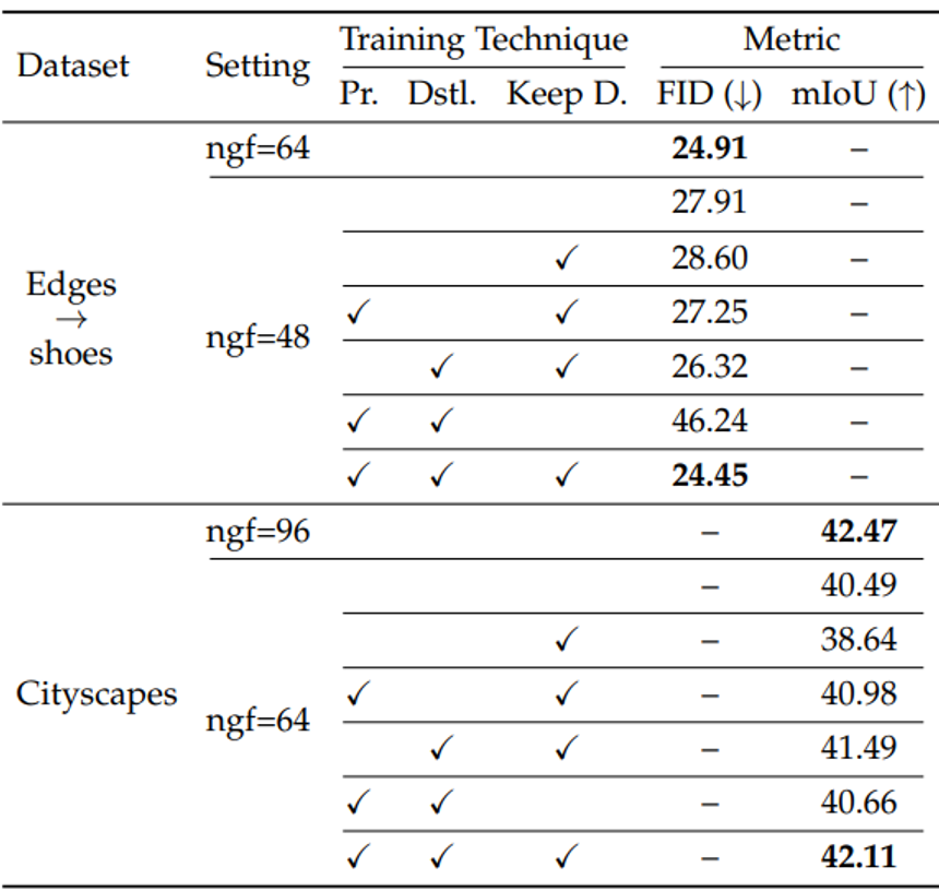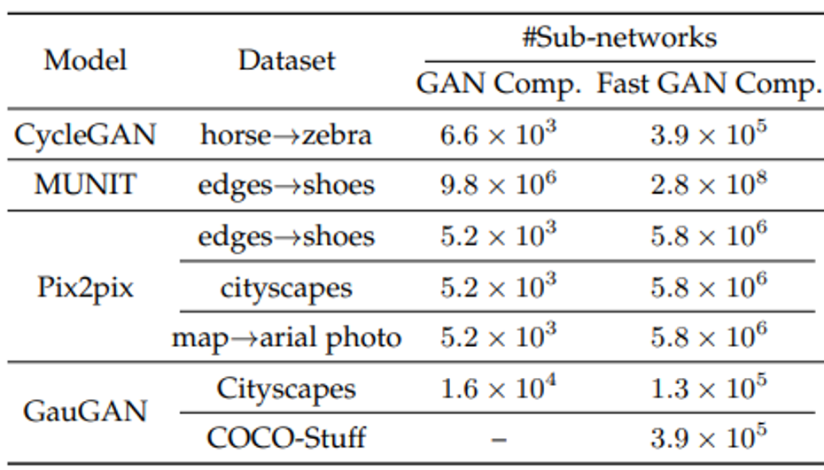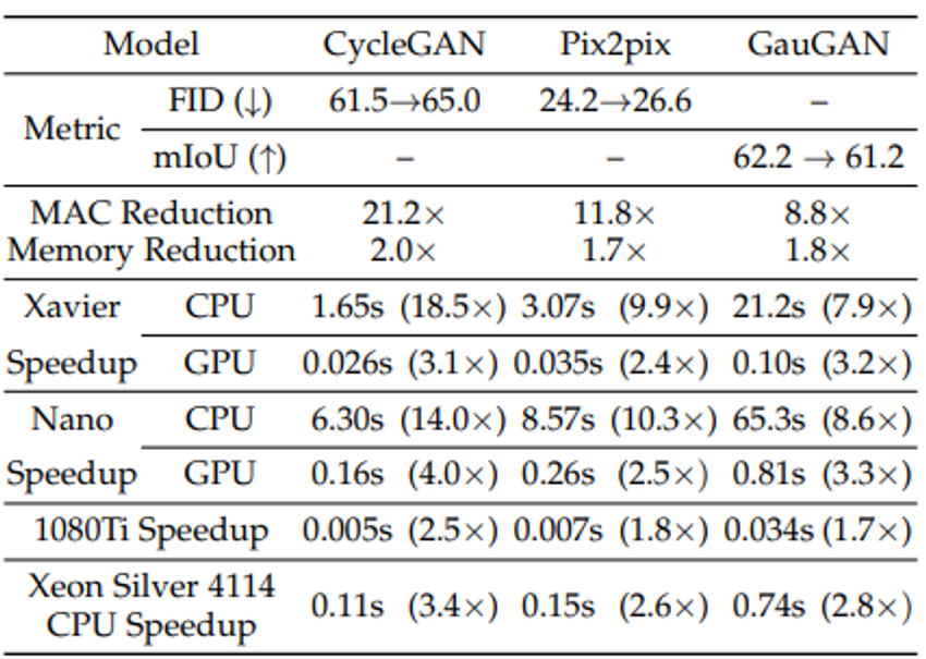 그 결과 CycleGAN, pix2pix, GauGAN에서 연산량 감소를 이뤄냈다. model performance는 retaining했다.