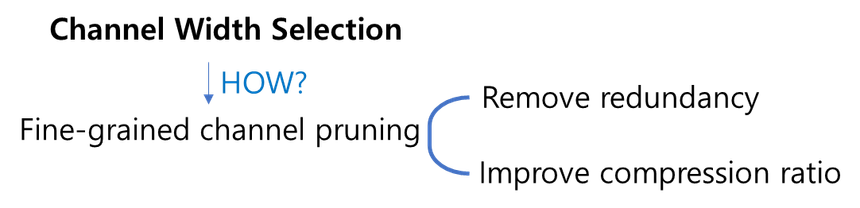 ⇒ compression ratio를 향상시키기 위해 channel pruning을 사용해 자동적으로 channel width를 선택하게 함으로써 redundancy를 제거하고 computation cost도 줄임