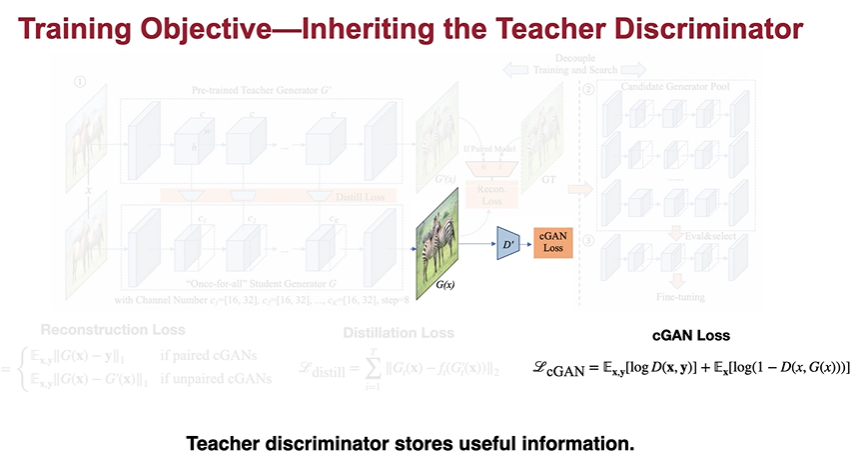 3. Teacher Discriminator를 그대로 가져와서 compressed generator과 함께 fine tune한다.⇒ Discriminator, Generator의 학습은 minmax loss로 이루어짐