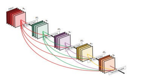 2) DenseNet169 : DenseNet의 모든 레이어의 특징 맵은 그 앞에 있는 모든 레이어에서 데이터를 받아 오고, 각 계층은 그 위의 계층(상위 계층)으로부터 데이터를 수집한다. 각 레이어는 그 이전의 모든 레이어에서 feature map을 수집하기 때문에 네트워크가 더 압축적이고 채널 수가 적어 계산 및 메모리 효율성이 향상될 수 있다.