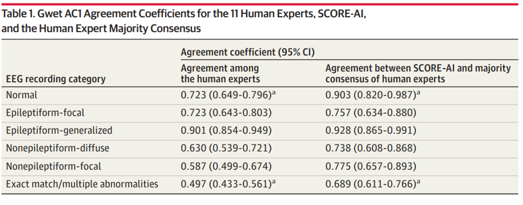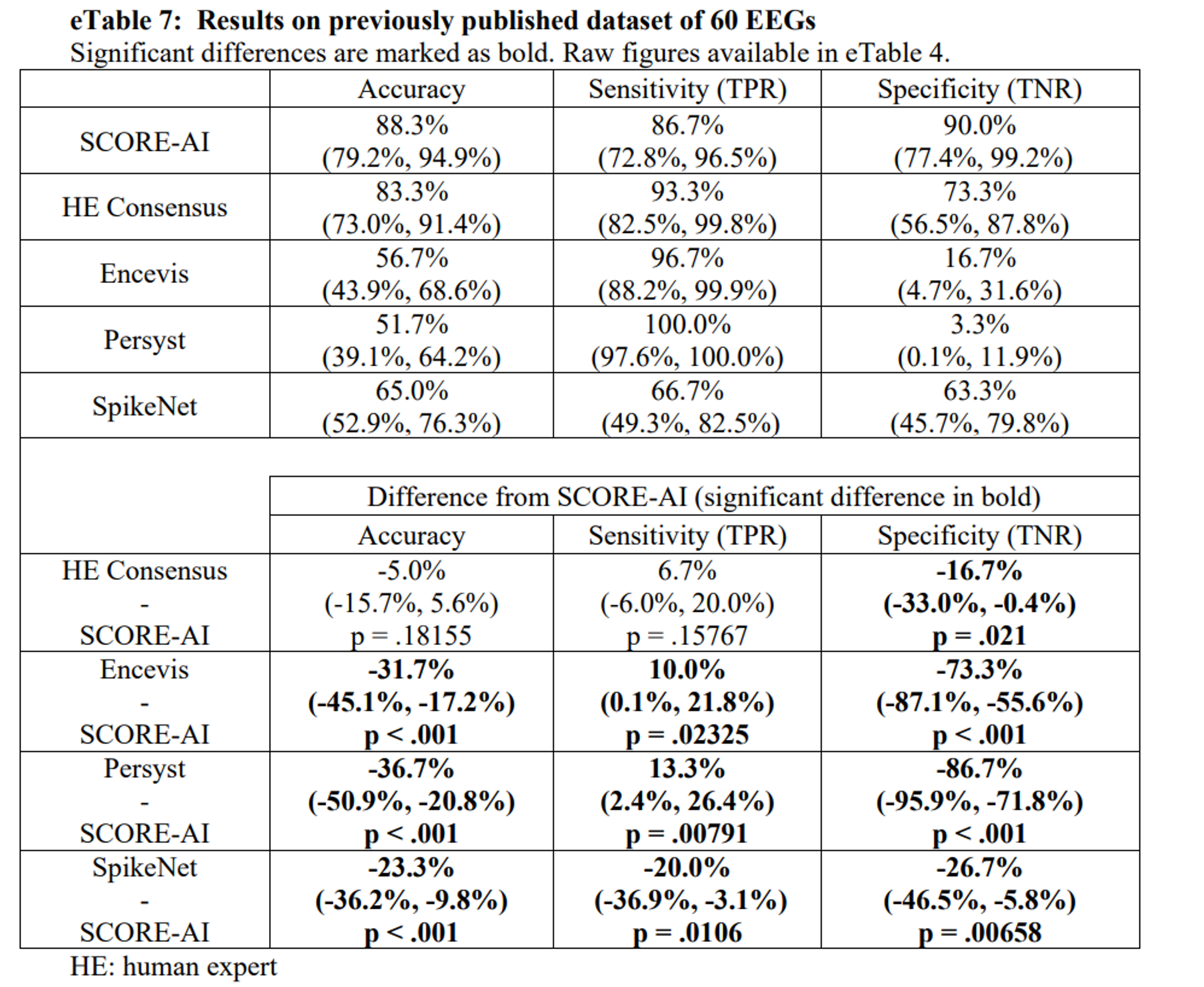 진단 정확도 상 본 SCORE-AI는 임상 뇌파 판독 시 전문가 수준의 정확도를 달성했기에, 전문 지식이 부족하거나 없더라도 사용할 수 있다는 장점이 있다. 또한 오독/오진 가능성을 줄일 수 있다는 점에서 업무 효율 상으로도 좋다.