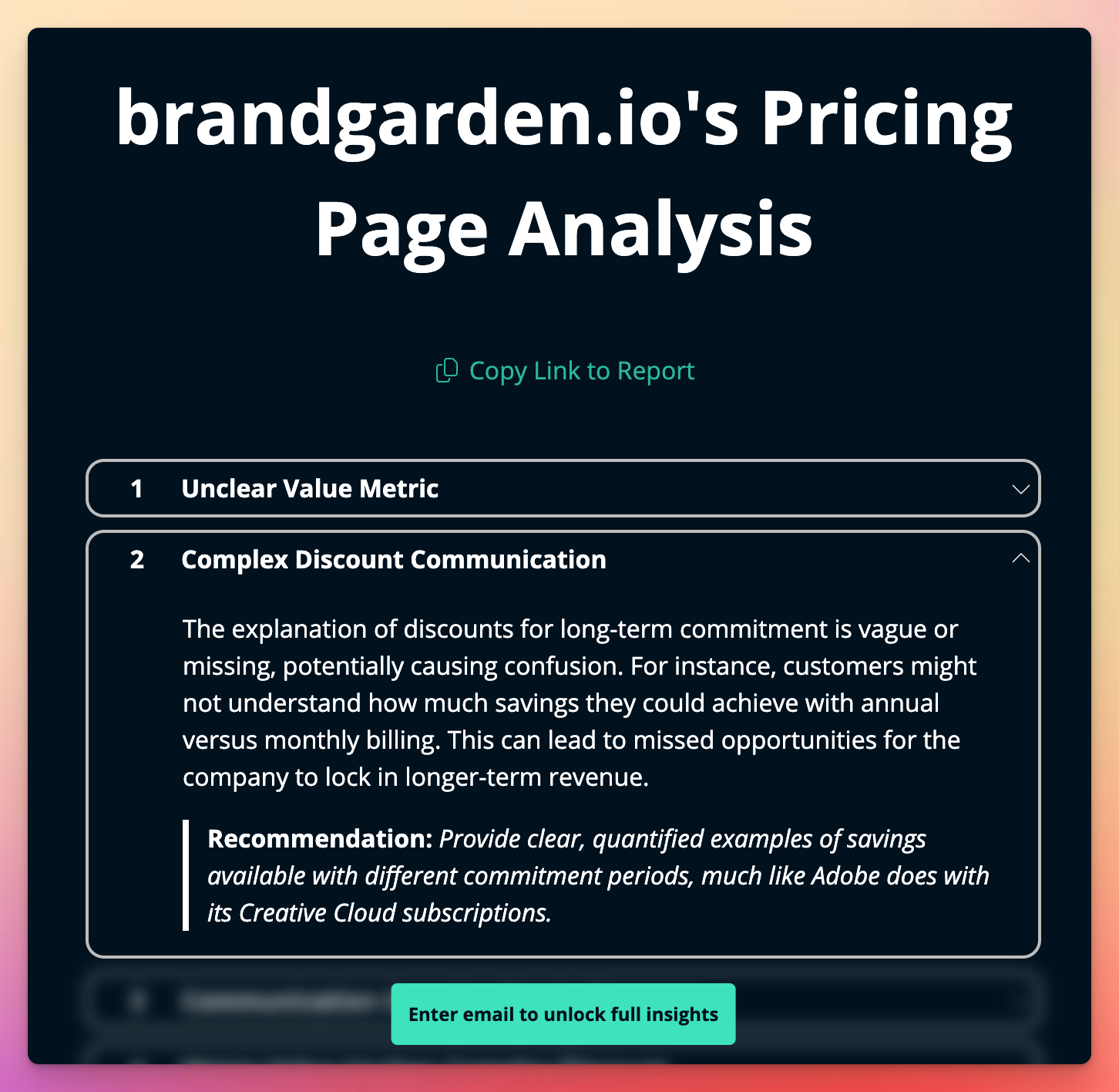 - 3단계 : 비즈니스 이메일 주소를 입력하면 총 10개의 가이드를 읽을 수 있습니다. 그리 정확하진 않지만 생각할 거리를 던지는 정도를 얻고자 한다면 나쁘지는 않네요.