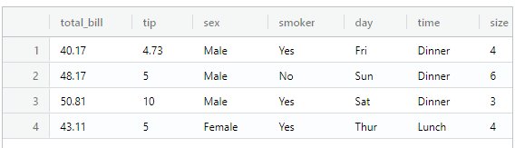 가지고 있는 데이터(금토일목)에 대해 Max(total_bill)와 결제자 정보가 출력됐다.