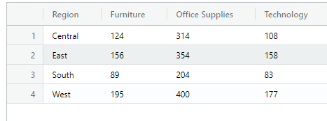 FROM (SELECT region Region, category, COUNT(DISTINCT order_id) orders