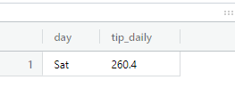 요일별로 팁 총액을 집계하고 팁이 가장 많았던 요일과 그날의 팁 총액을 출력하는 쿼리를 작성해주세요.