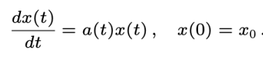이런 ODE와 a(t)가 deterministic parameter(결정적 파라미터)가 아닌 stochastic parameter(stochastic은 현 주가수준이 일정 기간 동안 변동했던 범위 내에서 상대적으로 어느 수준에 위치해 있는가를 가지고 판단하는 지표로, deterministic에 비해 변동적인 지표라고 생각하면 됨) 라 가정한다면, SDE를 도출할 수 있다.