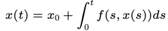 이와 같은 경우, 아래와 같은 적분식으로 표현이 가능하며 해당 적분식은 x(t) = x(t,x0, t0)의 해를 갖는다.
