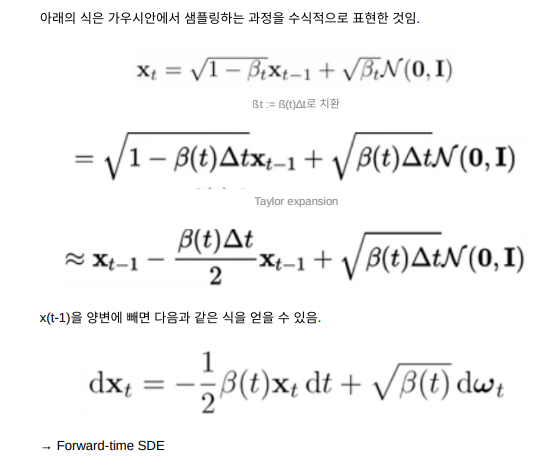 Diffusion Model 하에서의 forward-time // reverse-time SDE