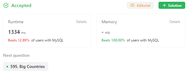 | [LeetCode] 595.Big Countries,1068. Product Sales Analysis 1 (0) | 2023.08.27 |