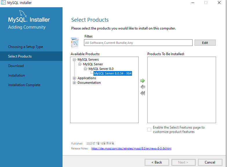 그 다음 Available products에서 select products를 해야 한다. 여기서 우선