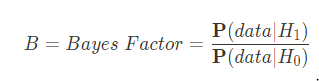 내가 확인하고자 하는 가설($H_1$)이 귀무가설($H_0$)보다 주어진 데이터를 얼마나 잘 예측하는지를 수치로 나타낸 값이 Bayes Factor.