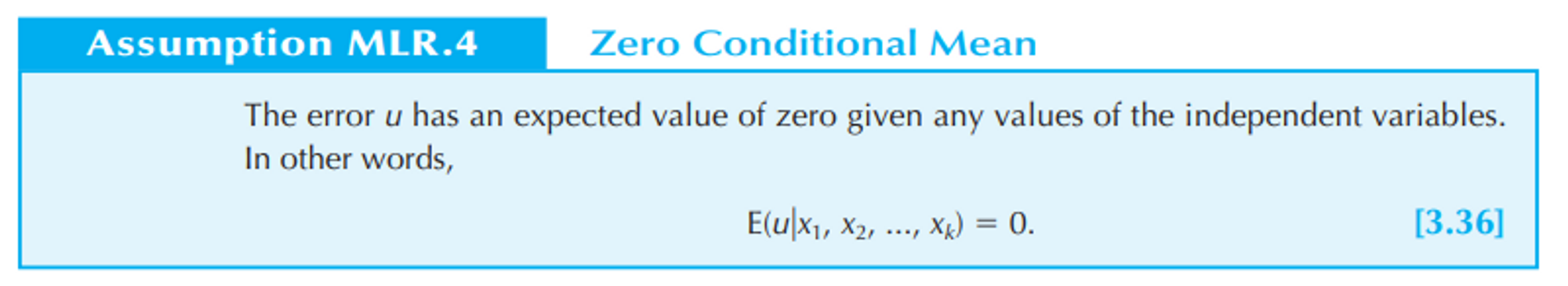 Assumption MLR.4 : Zero Conditional Mean