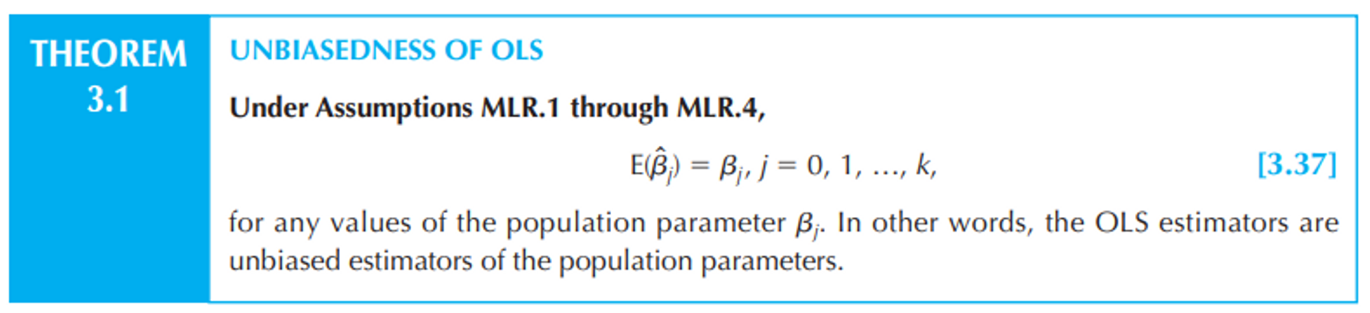 위 가정을 모두 만족할 경우 OLS estimator는 unbiased estimator다.