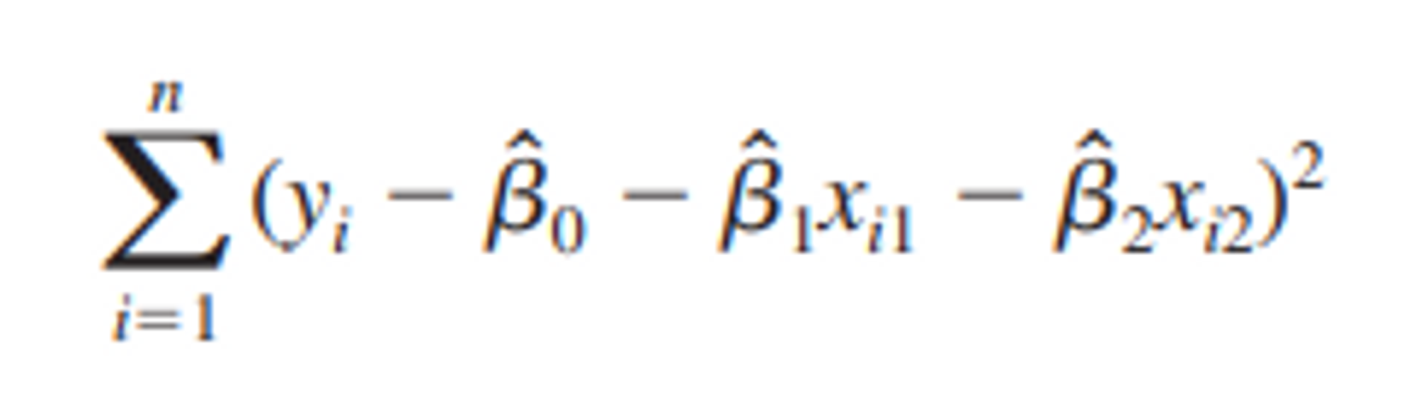 : 즉 y,x1,x2에 대한 n개의 관측치가 주어 졌을때, 추정치 b0~b2를 동시에 선택하여 잔차 제곱의 합을 최소화하기 위한 추정치를 산출한다.