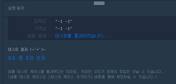 - '공백으로 구분' : split.(' ') 이 들어가야 함. 함수가 아니라면 input을 받아도 되겠지만 함수를 구현하라고 했으니 input 없이 진행
