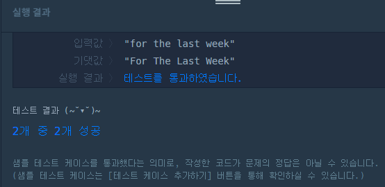 - 대문자화를 위해 .capitalize() 함수가 필요하며, split했으니 다시 붙여주는(.join) 함수를 곁들여야 한다.